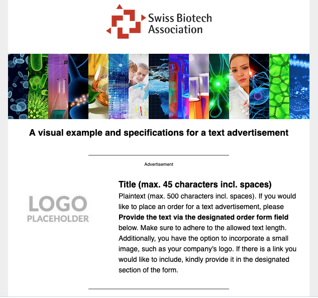 Order your ad in the Swiss biotech newsletter