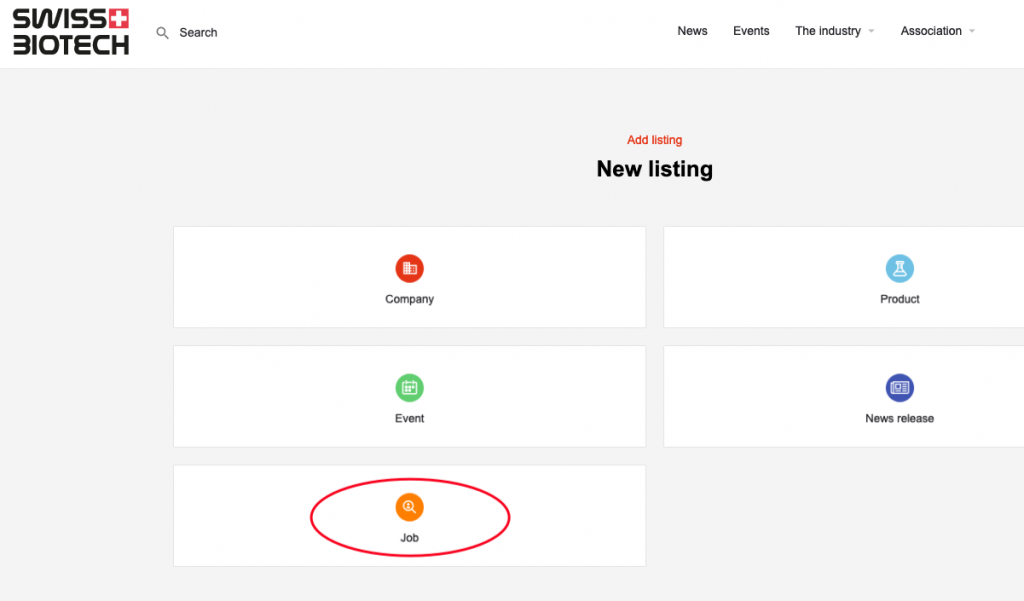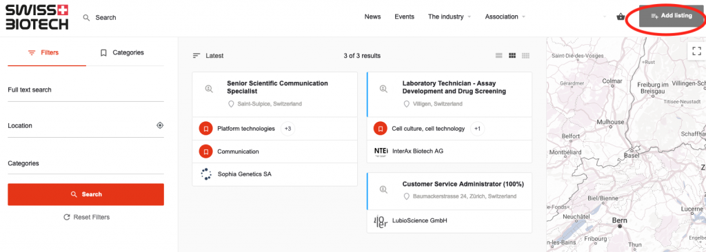 As a member of the Swiss Biotech Association you are (or one of your colleagues is) a registered user for our website. Sign in (top right) and choose the “Add listing” button top right on any page on our website.