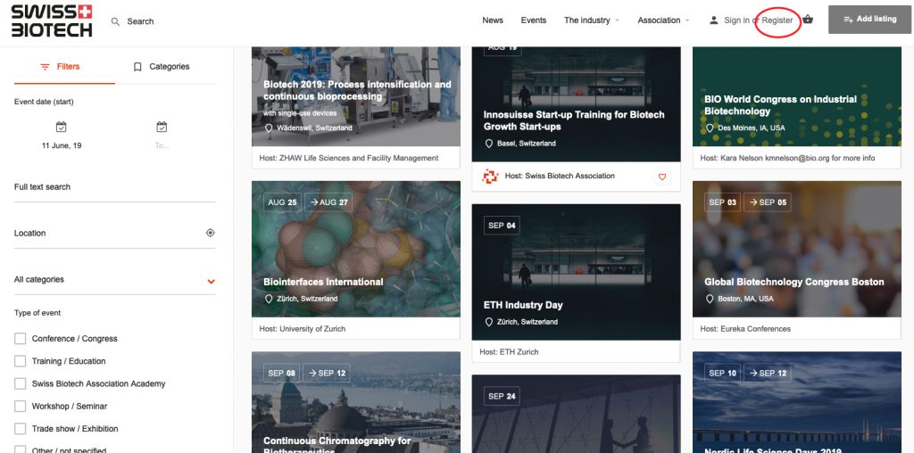 Type your e-mail address and set a password. Wait for the e-mail confirming your access to swissbiotech.org that is sent to your submitted e-mail address. Check spam if the e-mail does not arrive in your inbox after a few minutes.