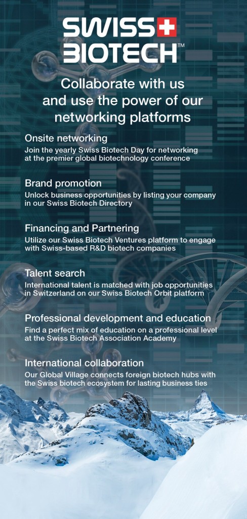 The Swiss Biotech Ventures platform connects Swiss-based R&D biotech companies with global investors and industry partners and facilitates financing and partnering.